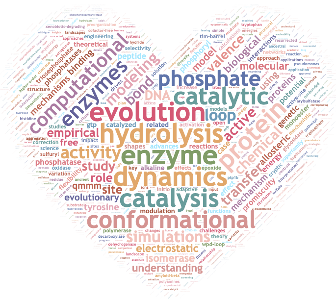 Our group has broad research interests, that focus on applying the tools of computational (bio)chemistry to understanding the chemical basis for complex biological problems. This spans a range of scientific questions, from understanding fundamental chemical reactivity through to understanding the physicochemical parameters that allow for the evolution of new enzyme functions. Current projects in the research group include: (1) Studying the role of conformational dynamics in enzyme evolution, focusing in particular on protein tyrosine phosphatases and the enzymes of histidine and tryptophan biosynthesis. (2) Understanding the origin and emergence of the earliest proteins. (3) Engineering novel enzymes for biocatalysis. (4) Protein-DNA recognition, with a focus on transcription factor-DNA interactions. (5) The development of new approaches for computational enzymology, combined with force field parameterization and as dictated by the needs of individual projects, including in particular network models for understanding residue interaction networks and protein allostery. Finally, although we primarily work with biological macromolecules, we are also interested in answering fundamental questions in physical organic chemistry, focusing on the study of small molecules (with a particular interest in phosphoryl and related group transfer reactions). For further information, please see our publication list.